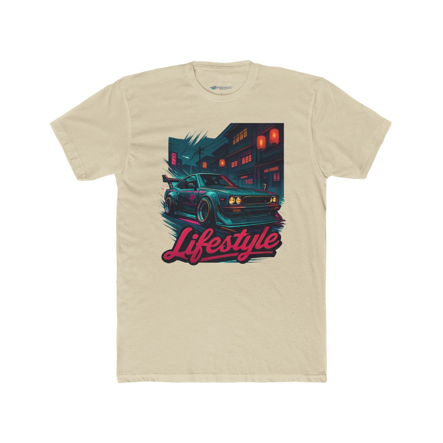Show you love for the JDM Bosozoku Car Culture Lifestyle with this lightweight cotton crew tee that brings neon-soaked street nights to your everyday wardrobe. A retro-inspired illustration of a lowered coupe sliding through a rain-glossed city, neon signs glowing and windows warm with orange light, sits centered on the chest with the word “Lifestyle” in bold, cursive script. The shirt’s classic fit and clean crew neckline make it easy to layer under jackets or wear solo while the subtle back neck print adds a quiet, authentic brand touch. Wear it after a night drive, to car meets, or anytime you want to carry that late-night city energy with you.